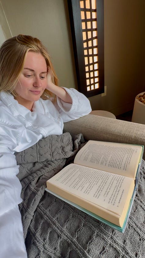 Each day I rotated through a workout set for morning movement, athleisure for classes and sessions, and a swimsuit for pool or spa time. Think Beyond Yoga, Varley, Frank & Eileen. Fresh LAKE pajamas every night — obviously.