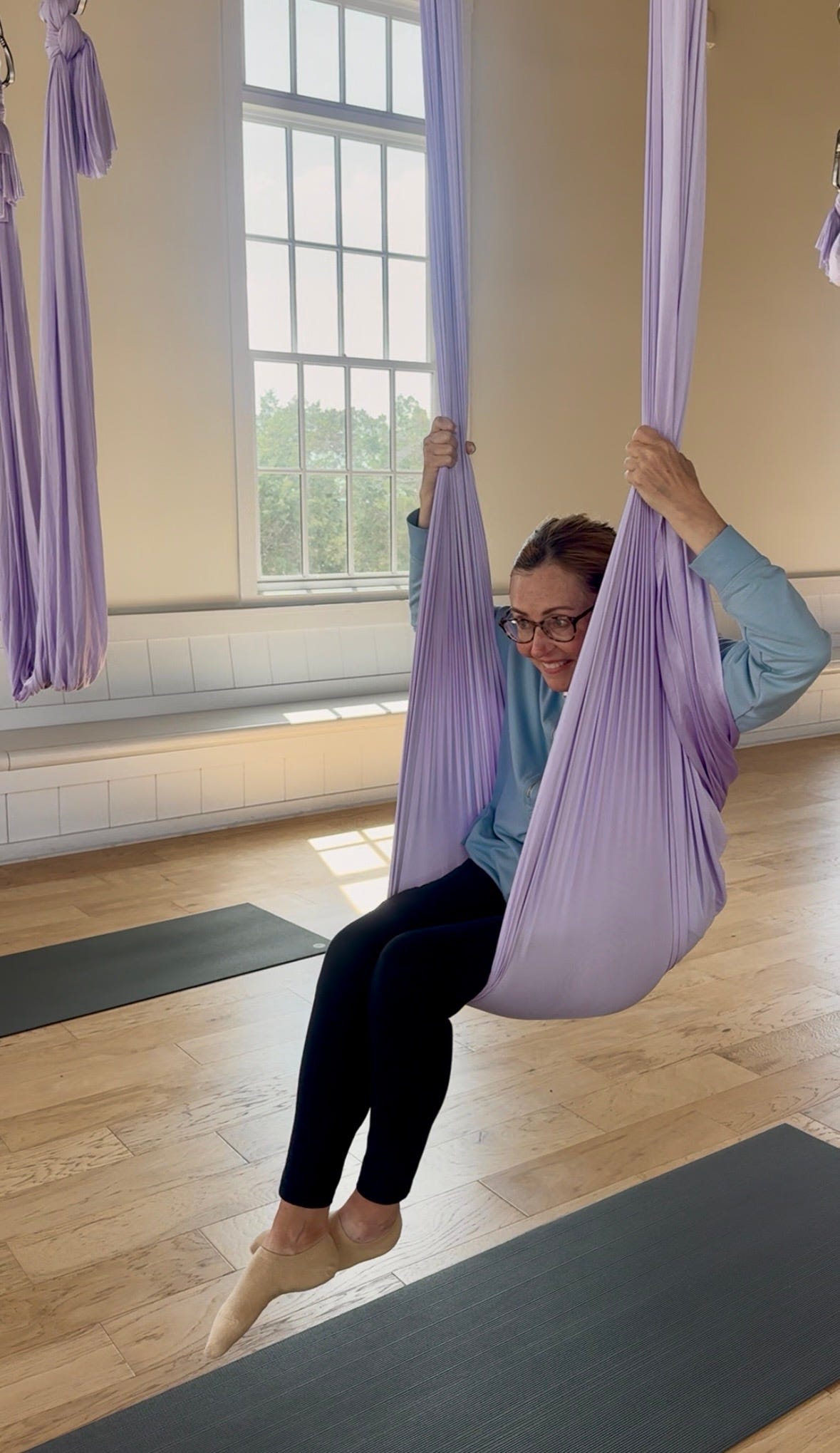 Indoor Fun Flow Aerial Yoga — The closest my mom and I came to losing it entirely (in the best way). A small class of three, which meant the instructor could guide us at exactly our own pace and comfort level. Not recommended if you’re prone to motion sickness — but the cocoon Shavasana at the end, fully encased in silk like a very pampered caterpillar in a chrysalis, was one of the more extraordinary sensory experiences of my life.